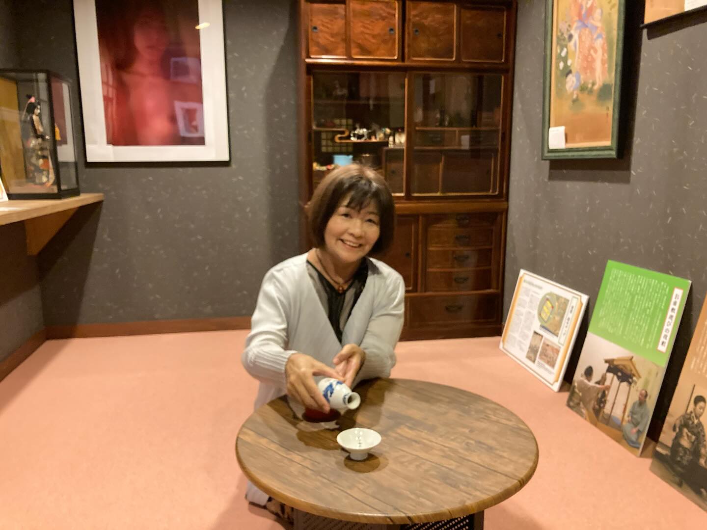 1Fの資料室に、新しくちゃぶ台を設置されたとのことで(ちなみに長崎の卓袱料理の影響で、日本の一人一膳文化が、テーブルを囲むちゃぶ台文化に変わりました。ちゃぶ台は漢字で書くと卓袱台。同じ漢字の中国語読みです)、ご亭主の中江白志さんと、しっぽくだけにしっぽりと(苦笑)サシ呑みごっこ。