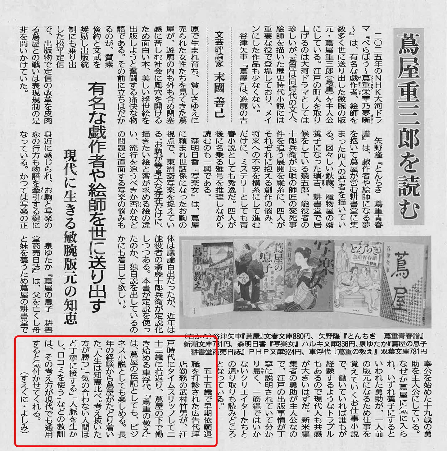 書評家の末國善己さんが『蔦重の教え』を取り上げてくださいました。